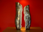 2007Deze twee duo vazen vormen samen een geheel. Aan de buitenkant hebben ze samen een ronding van een vaas. In het midden komen de grillige randen samen.